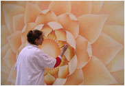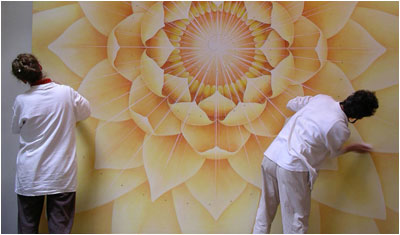 "Elaine and Lynne are two of the finest artists working in America today. To observe their work is to see, as William Blake once wrote, 'heaven in a wildflower.' They have a way of seeing the world from its deepest level and can translate that vision into wonderful works of art that delight the senses. The wall paintings they created for us are imbued with light, beauty, and bliss. Elaine and Lynne radiate love, happiness and devotion in their personal lives and the art they create reflects these most refined qualities. When we look upon their artwork we feel happy, peaceful and inspired. It was a real joy to work with Elaine and Lynne from the start of the project to the finish."