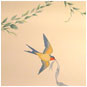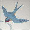bright birds appearing in the living-room panel paintings, and in the